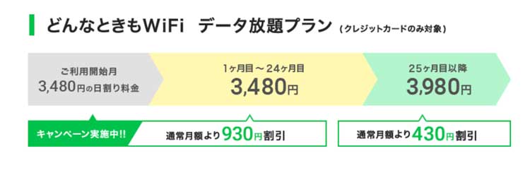 どんなときもWiFiは月額3,480円※だけで利用できます。