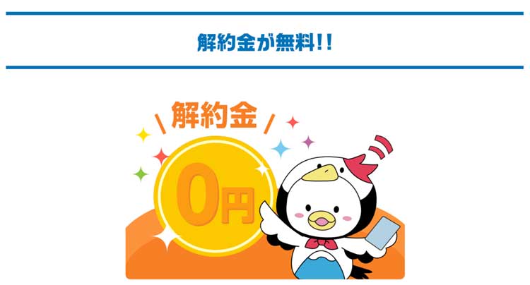 - 解約金が0円なので、契約期間の縛りがない