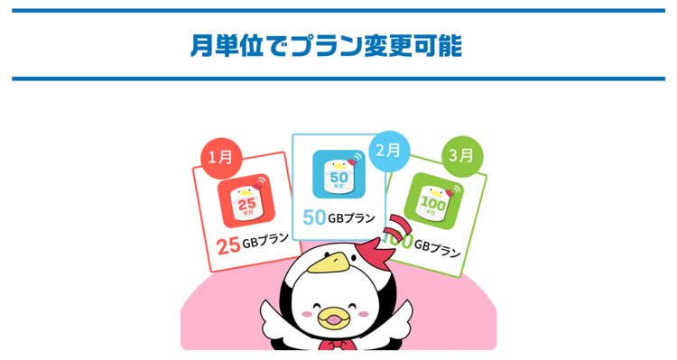 月単位で気軽にプラン変更ができる
