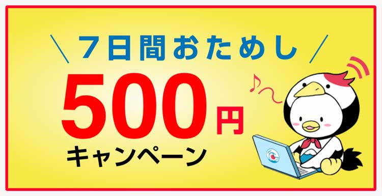 - 7日間500円お試しキャンペーンあり