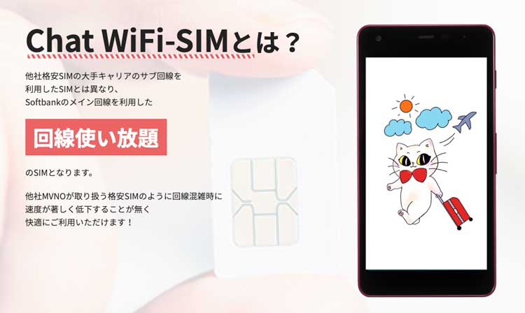 - 1 Chat WiFi-SIM(チャットワイファイシム)はSoftBankのメイン回線を使用した無制限利用可能な最強SIMです