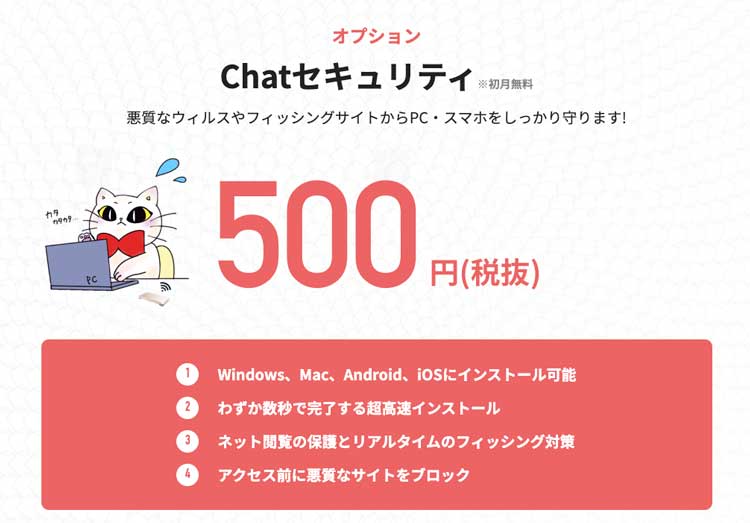 Chat WiFi-SIM契約時には、「Chatセキュリティ」というオプションに入らなければなりません。