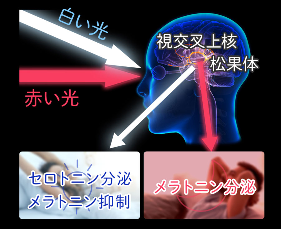 - 睡眠ホルモン「メラトニン」が抑制される