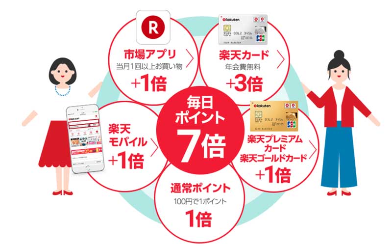 楽天のサービスを合わせて使えば、楽天での買い物のポイントが最大7倍!
