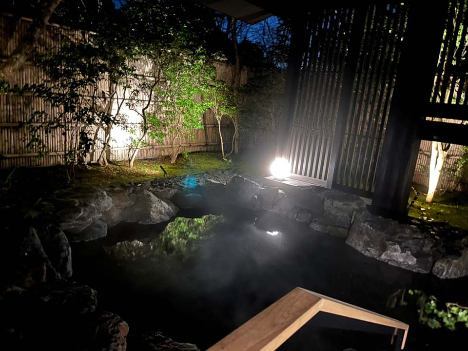 本来男女別の露天風呂なのですが、人がいないから今の時間なら二人でつかっていいよーと貸し切りの露天風呂になりました