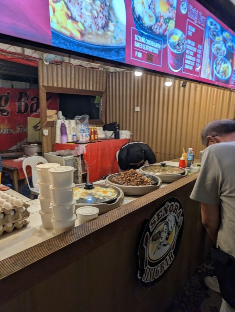 僕が実際に食べたのは、シシグーというフィリピン名物。ひき肉の上に卵が乗っている。ガパオライスとか、魯肉飯とか、そういったものをイメージして貰えればOK。普通に美味しい
