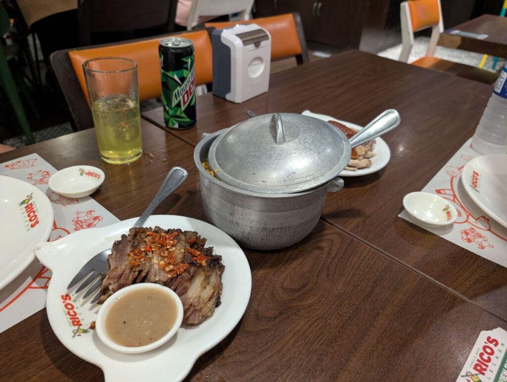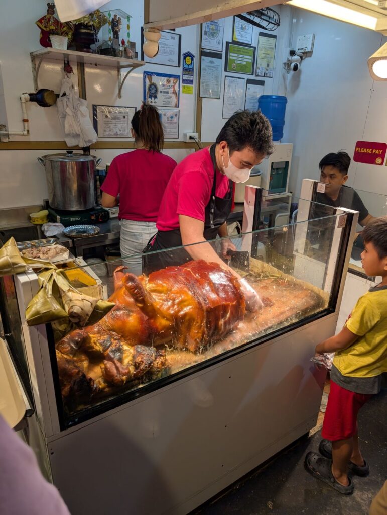 これはレチョンというセブの名物である豚の丸焼き。中々ショッキングな見た目だけど、全然美味しい(あと火が通ってて安心)