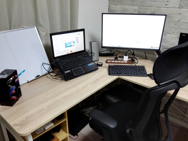 元々コタツで全ての作業をしていたのですが、引っ越しをきっかけに憧れのL字デスクを導入しました