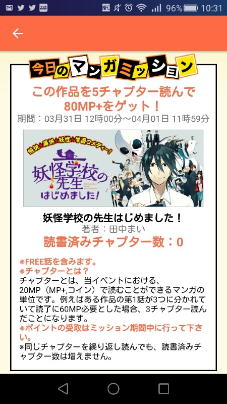 それに加えてイベントやミッションで貰える事もありますね。特定の作品を読むと貰えたりします