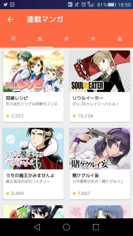 ほとんどの作品が曜日更新で、基本的にこれを追っていく形になります