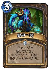 死角からの一刺し(0コスダメージを受けてないミニオンに2点)、影の一閃(3コスダメージを受けてないミニオンに5点)、暗殺(5コスミニオン破壊)