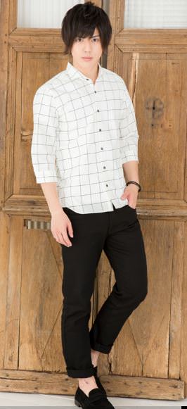 マネキンコーデ4:チェック七分袖シャツ×半袖T×デニム