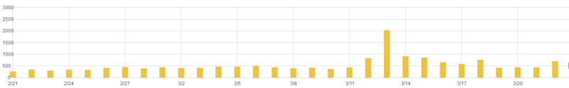投稿したのが夜だったから2時間くらいでそれなりに伸びて、翌日2000近く(実は1900いくつかだけど、キリいいから2000って言ってる)まで伸びて、その翌日まで影響を与えている
