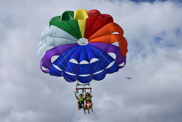 パラセーリングっていうのは、船に引っ張ってもらってパラシュートで海の上に連れてかれるレジャーです。イメージとしては凧揚げがわかりやすいと思う。あれの海の上ver