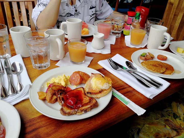 ハワイの食事はブッフェはともかく、基本的に量が尋常じゃないので、二人とかだと大して品数頼めません。色々な種類の料理が食べられるのは4人とかで行ったからこそですね。最高