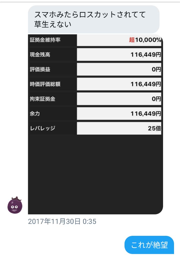 つまりこの後一時間で余裕のロスカットです。本当にありがとうございました