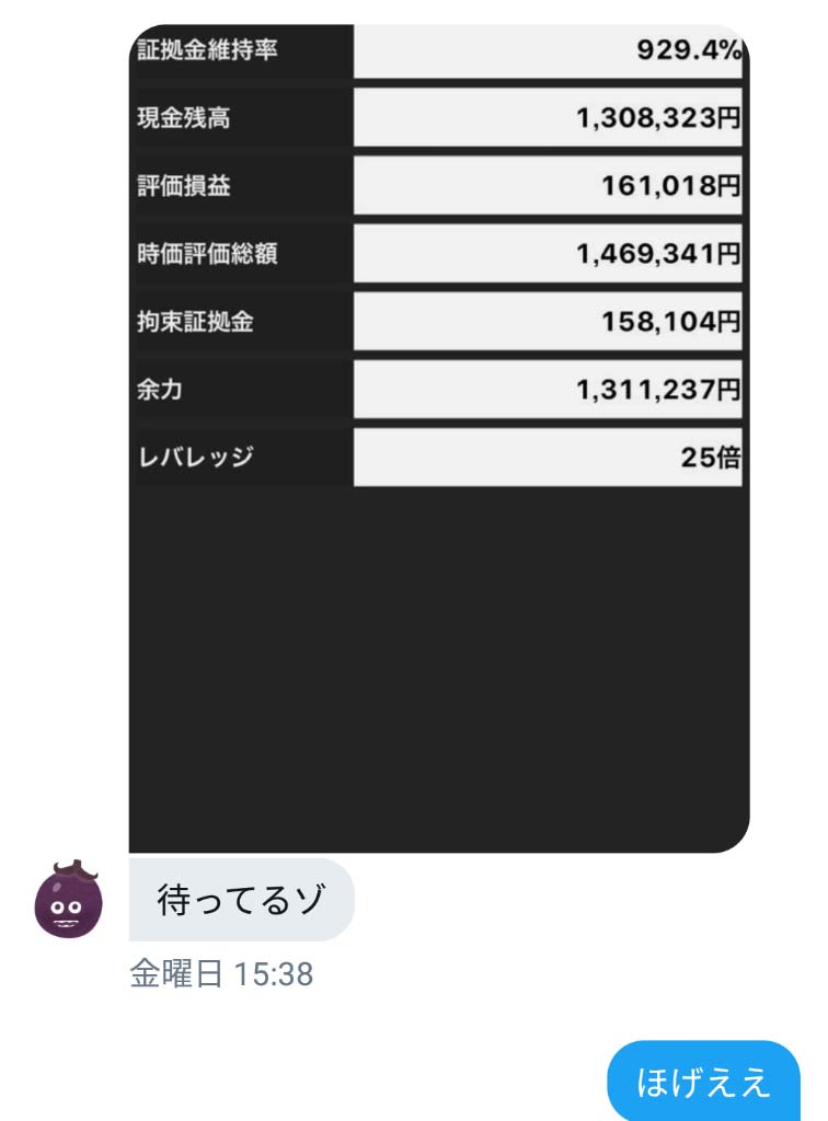 だって勝負開始時に現物1枚買ってたら、ほっとくだけで100万円増えてますからね。意味わからんわ