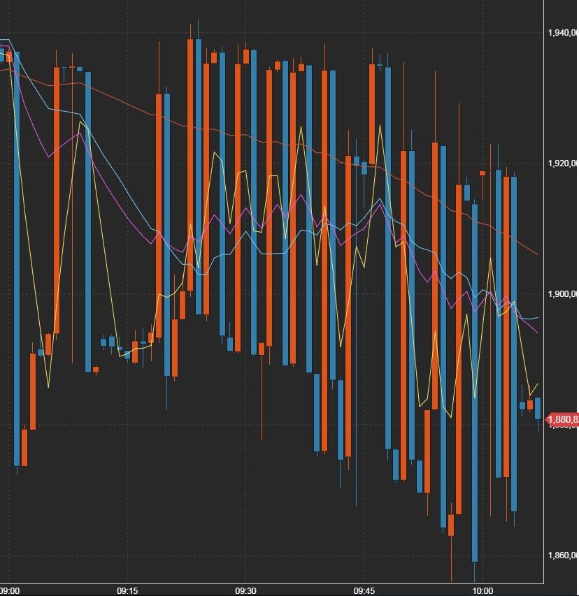 1分線なので、1分毎にこれだけ値動きしてるという状態です