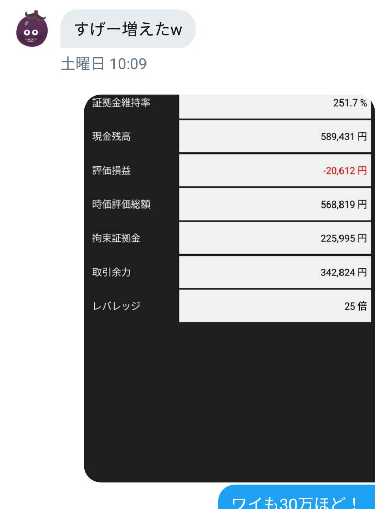 結果的に、10分足らずで30万の利益!! ありがてぇ!!