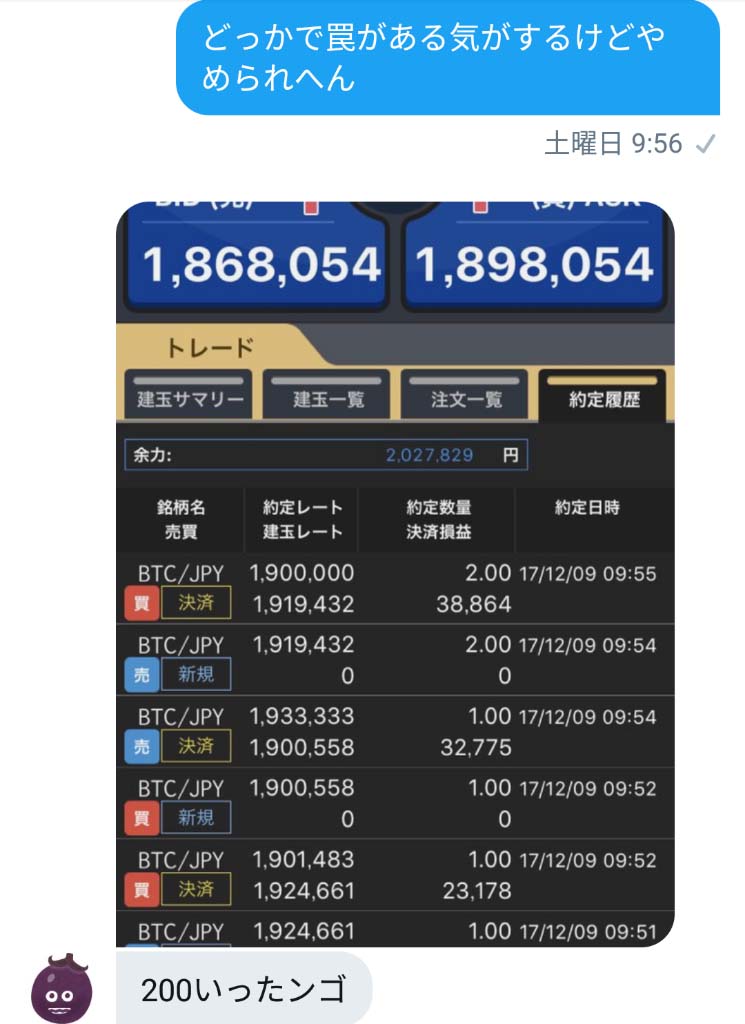 「俺たち、もう二度とBTCFXやらずに勝ち逃げした方が良いんじゃねーか??」