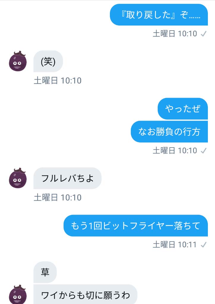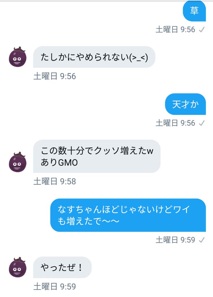 ちなみになすさんは儲けをBTCに、ワイはリップルに変えています(その後リップル爆上げしたけど53円くらいで手放したクソバカ低能野郎は私です)